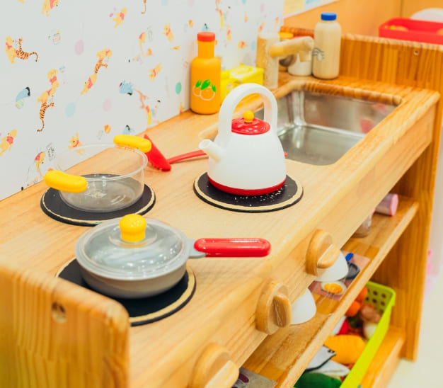 絵本コーナー、ままごとコーナー、赤ちゃんコーナー、すべり台等、用意しています。